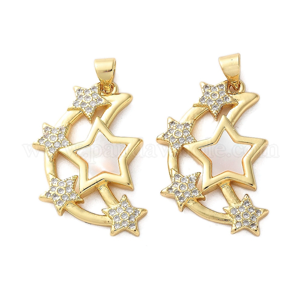 Латунные микро проложить кубического циркония подвески, с оболочкой, луна со звездными чарами, стойки покрытие, прочное покрытие, без кадмия и без свинца