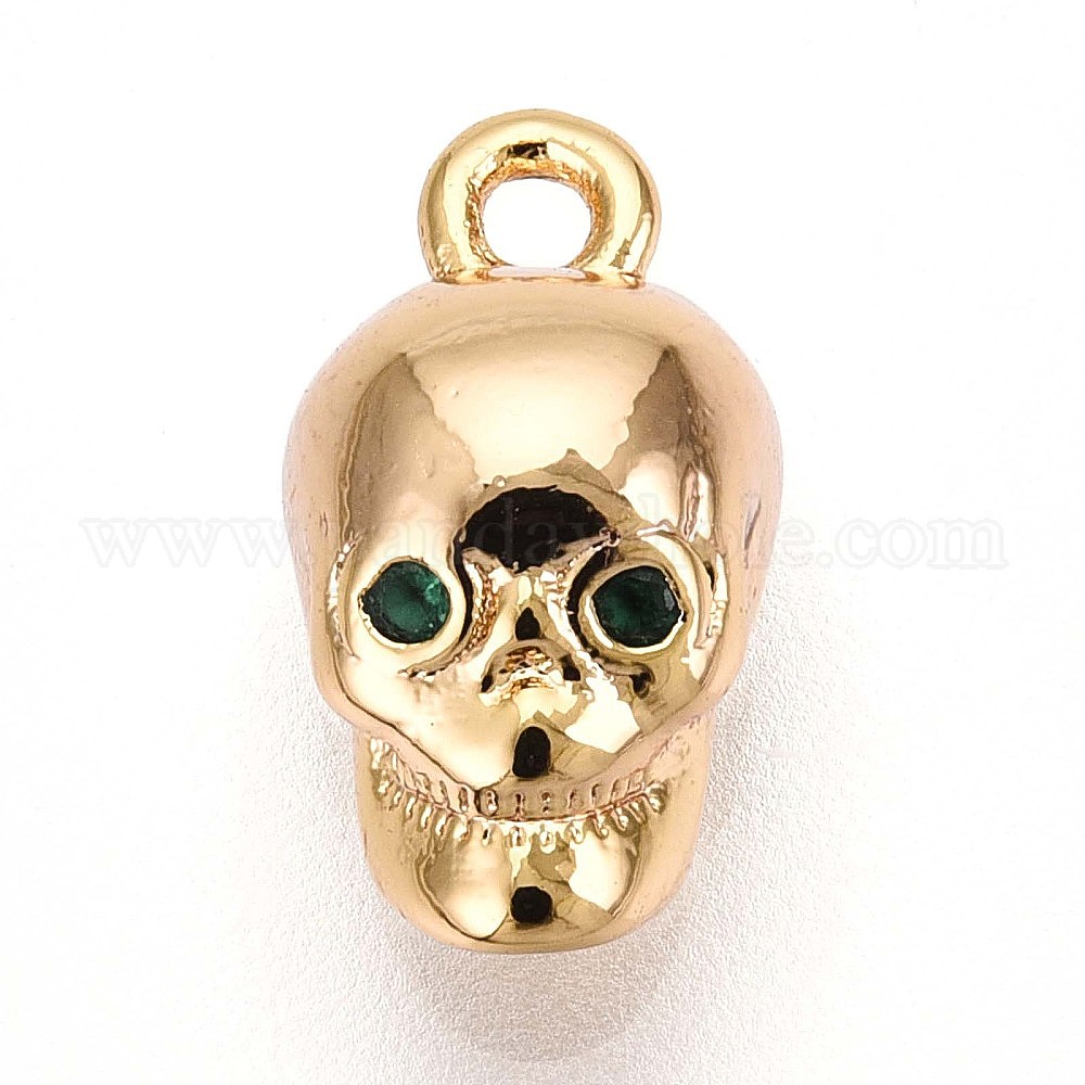 • Настоящее золото 18K Латунные микропаве прозрачные подвески с фианитом, череп прелести, без кадмия, без никеля и без свинца, реальный 18 k позолоченный, 10.8x5.5x3.5 мм, отверстие : 1 мм