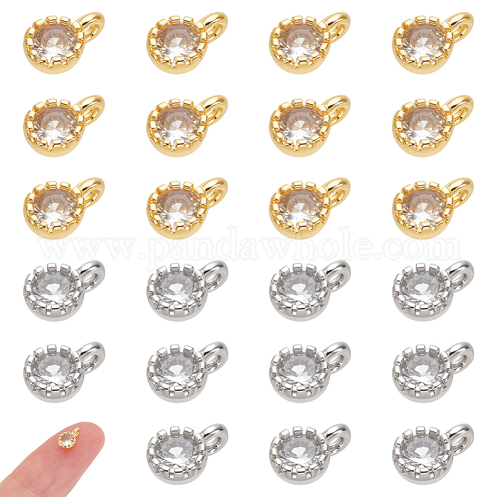 24 шт 2 цвета кулоны из латуни, микропаве, циркония, плоско-круглые, стойки покрытие, долговечный