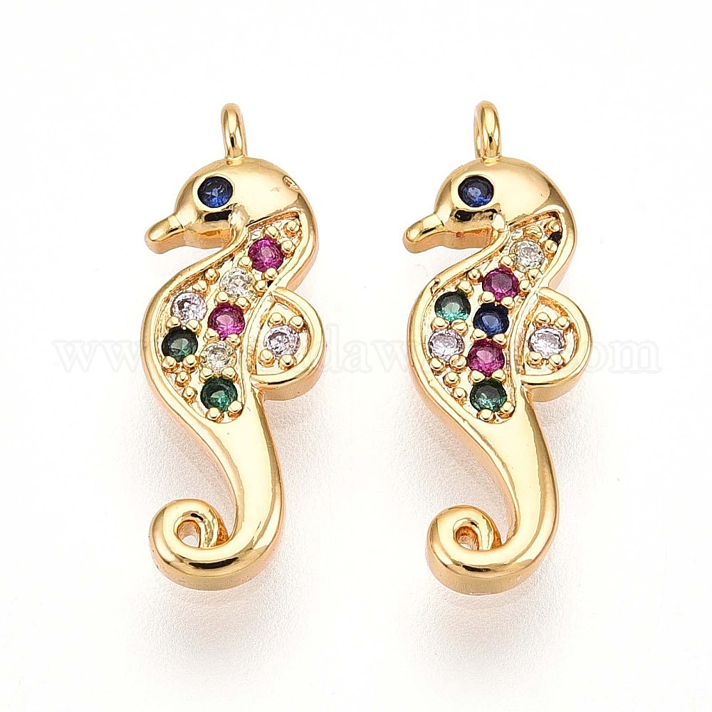 • Настоящее золото 18K Латунные микро проложить кубического циркония подвески, прелести морских коньков, реальный 18 k позолоченный, 15.5x5.5x2 мм, отверстие : 1 мм