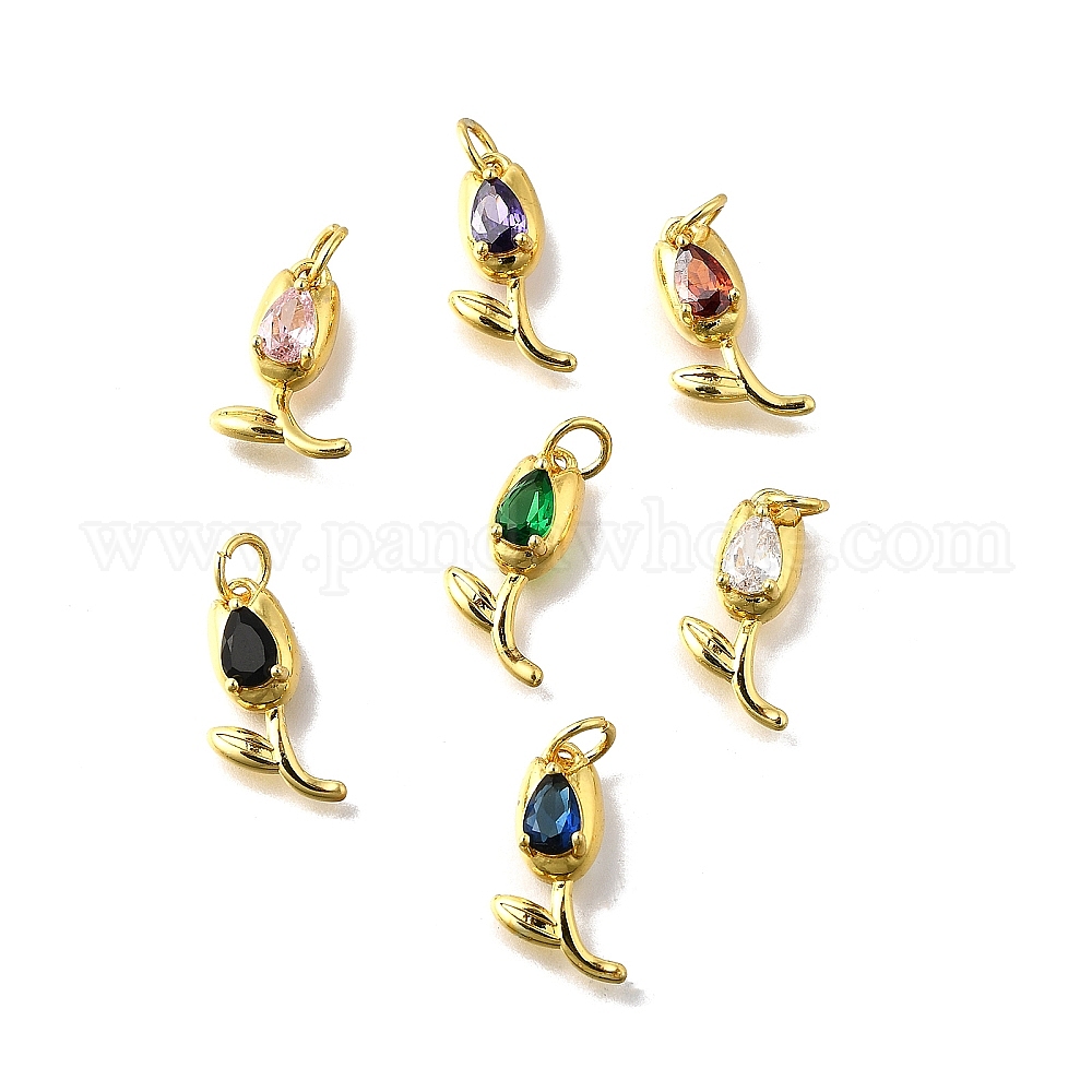 • (52) Непрозрачная лаванда Латунные микро проложить кубического циркония подвески, , с прыжковых колец, без кадмия и без свинца, долговечный, стойки покрытие, реальный 18 k позолоченный, разноцветные, 17.5x7.5x4.5 мм, отверстие : 3 мм