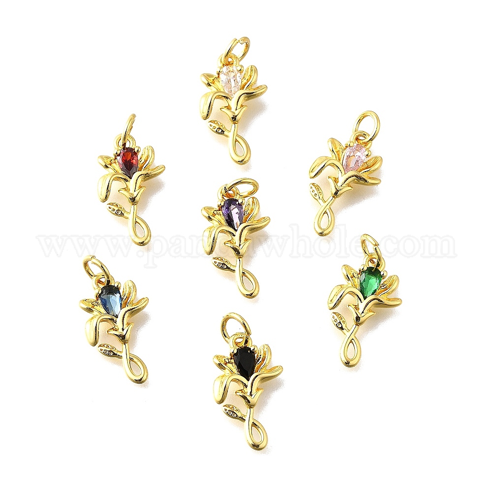 Латунные микро проложить кубического циркония подвески, , с прыжковых колец, без кадмия и без свинца, долговечный, стойки покрытие, реальный 18 k позолоченный