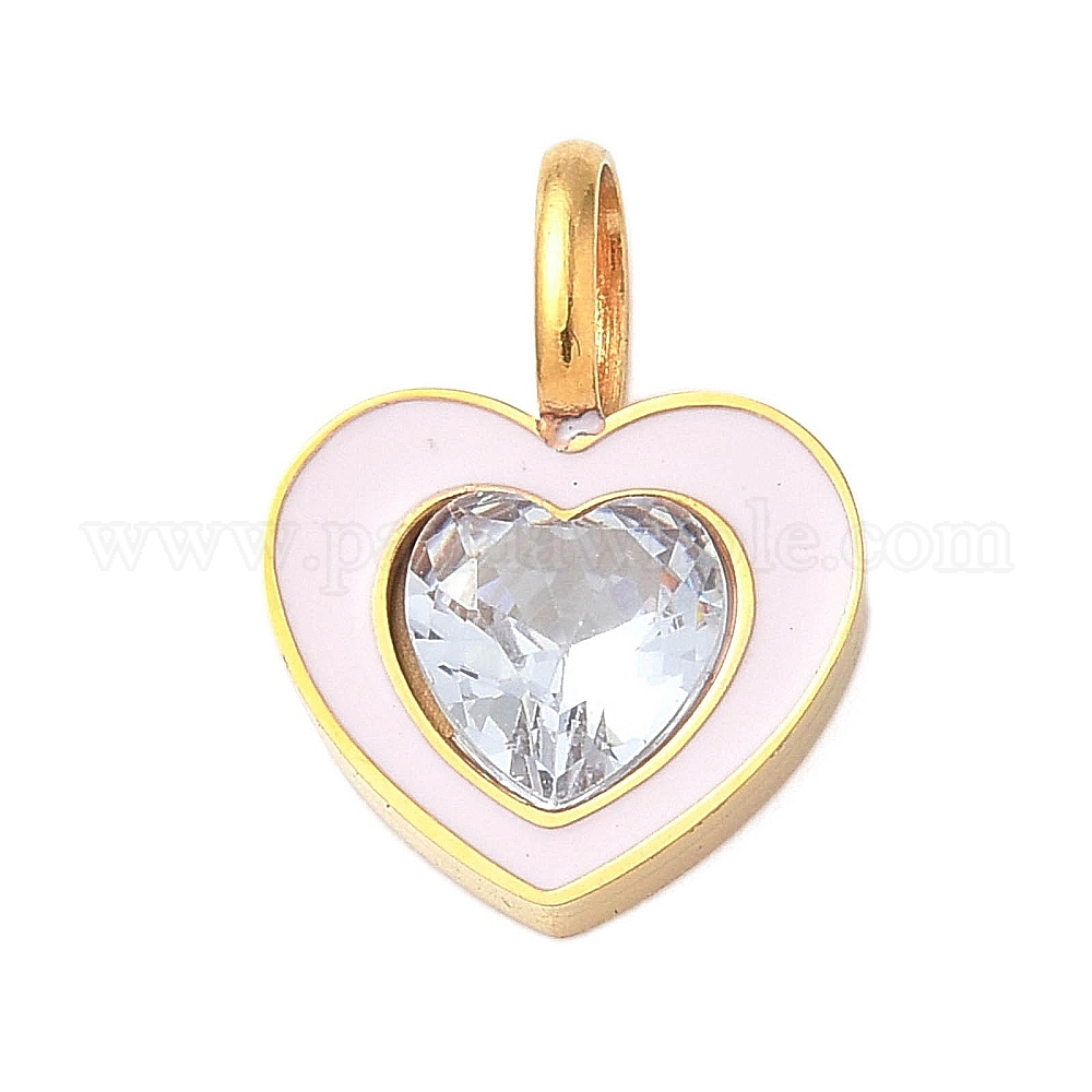 • Настоящее золото 18K 304 микро нержавеющей стали прокладывать Цирконом подвески, сердце прелести, реальный 18 k позолоченный, 15x11x3.5 мм, отверстие : 3.5x5 мм