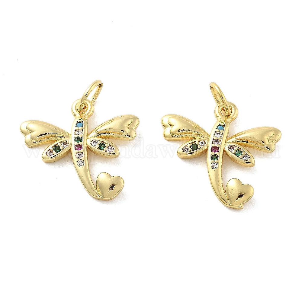Латунные микро проложить кубического циркония подвески, стрекоза, без свинца и без кадмия, долговечный, стойки покрытие, с целью перехода в кольце