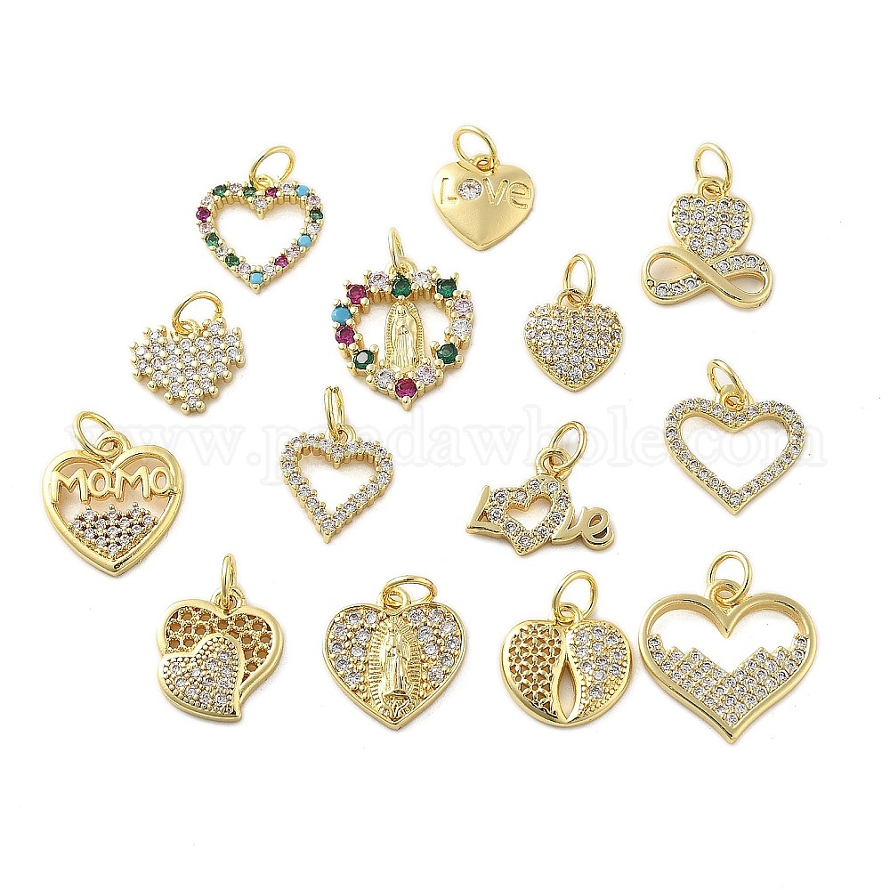 Подвески из латуни с микропаве ко Дню матери и кубическим цирконием, сердце со словом мама прелести, без свинца и без кадмия, долговечный, стойки покрытие, с целью перехода в кольце