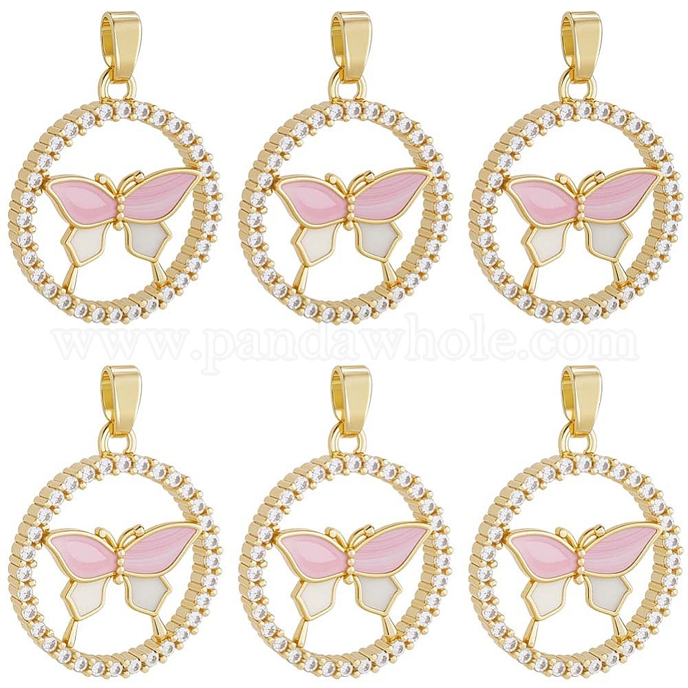 6 шт. латунные эмалевые подвески с микропаве из кубических цирконий, подвески в виде кольца и бабочки, реальный 18 k позолоченный