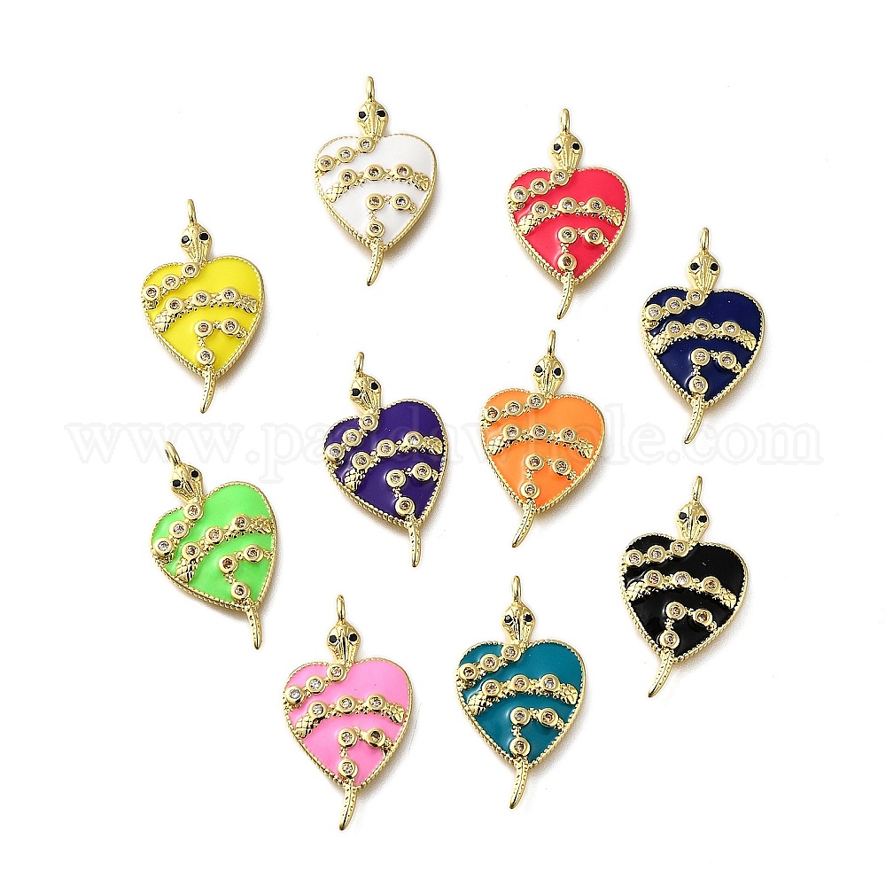 Латунные микро проложить кубического циркония подвески, с эмалью, сердце со змеиными чарами, без свинца и без кадмия, стойки покрытие, долговечный