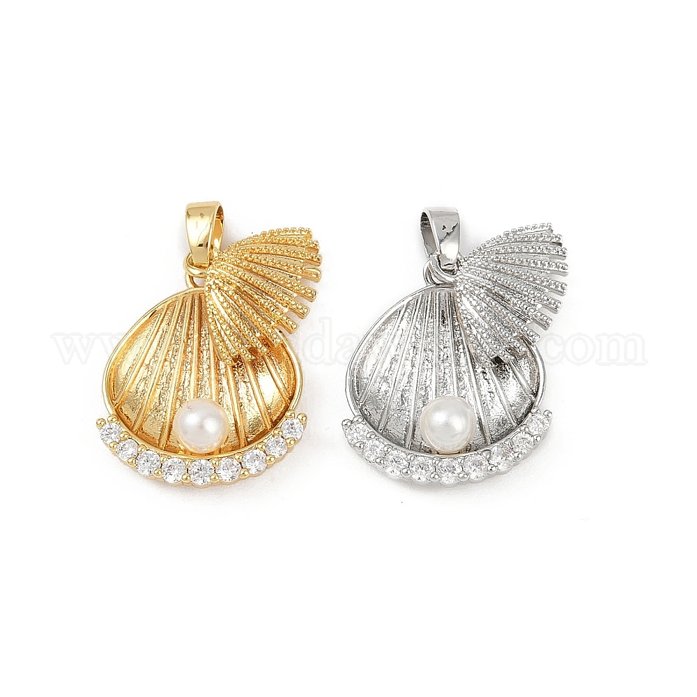 Латунные микро проложить кубического циркония подвески, без кадмия и без свинца, формы раковины, с абс пластмассовой имитационной жемчужиной