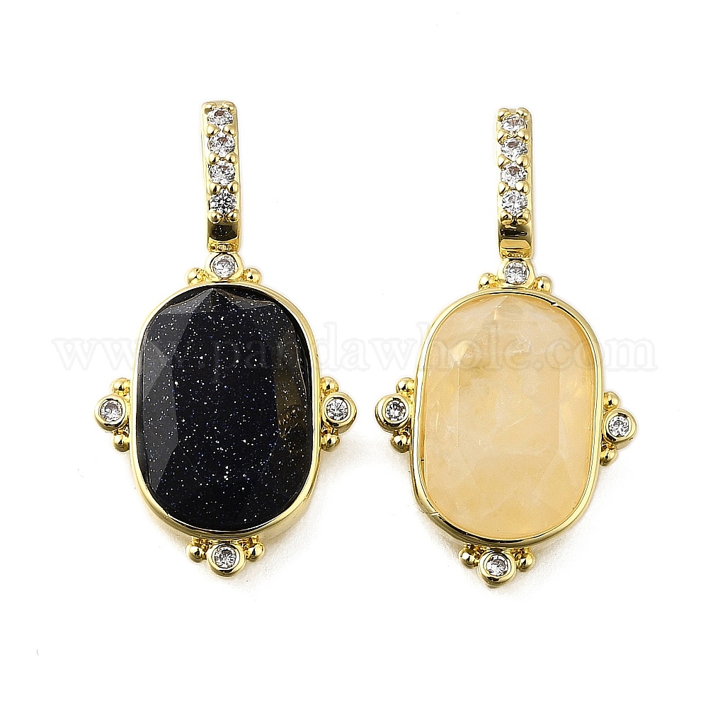 Латунные микро проложить кубического циркония подвески, с белым кристаллом/голубым песчаником, овальные амулеты, без свинца и без кадмия, стойки покрытие, долговечный