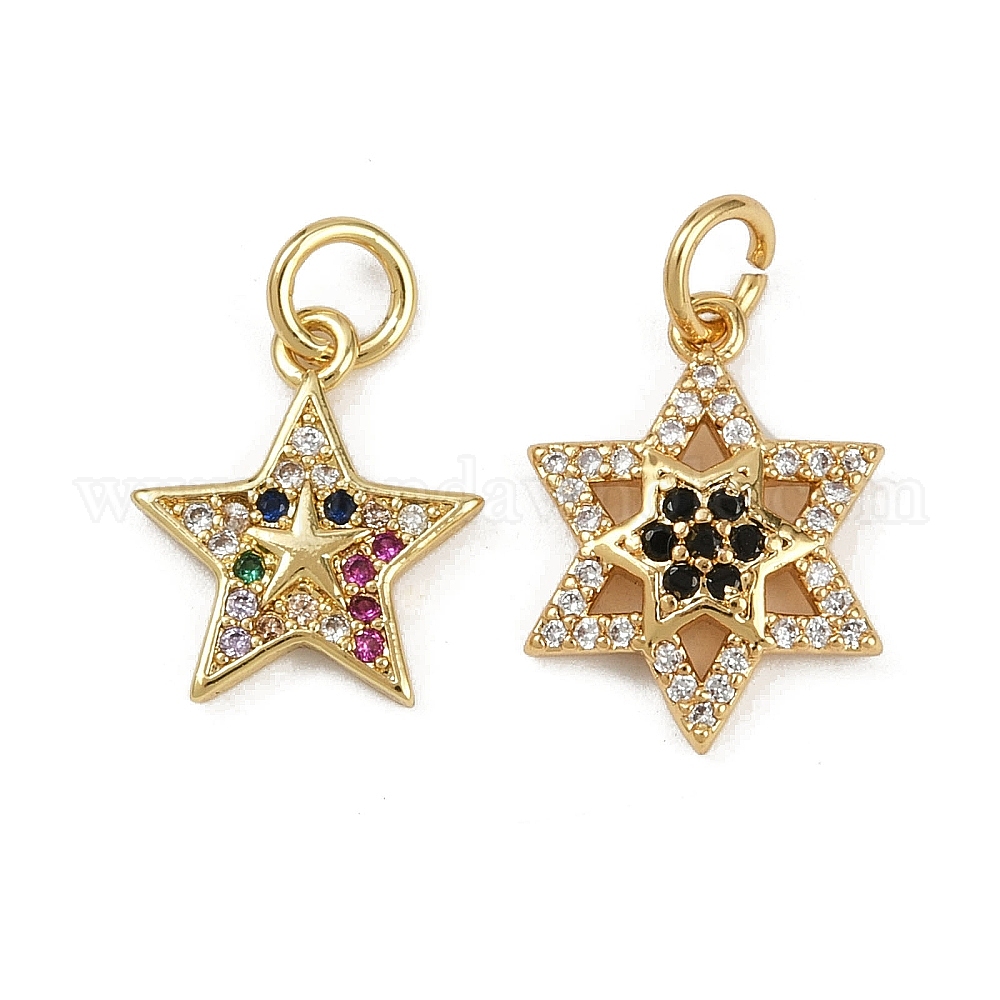 Латунные микро проложить кубического циркония подвески, без кадмия и без свинца, звезда, реальный 18 k позолоченный, с целью перехода в кольце
