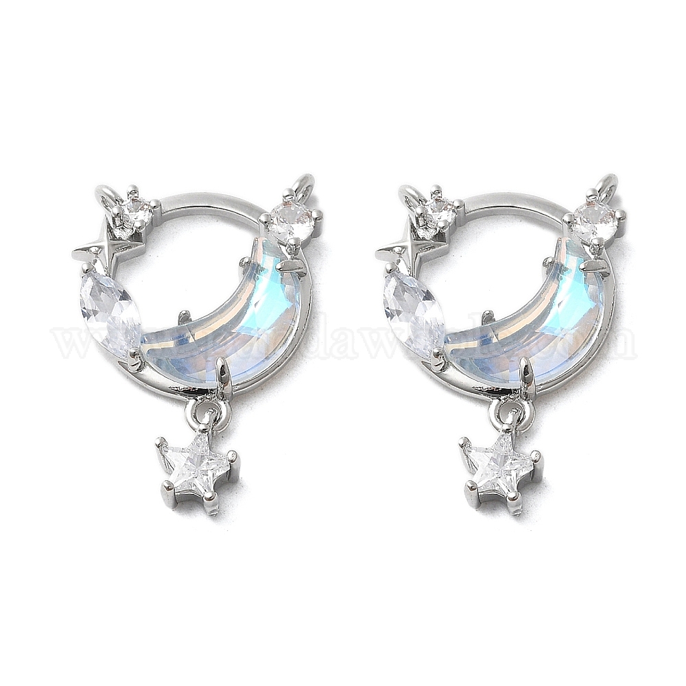 Латунный микропаве кубический цирконий с подвесками из смолы, без кадмия, без никеля и без свинца, звезда и луна