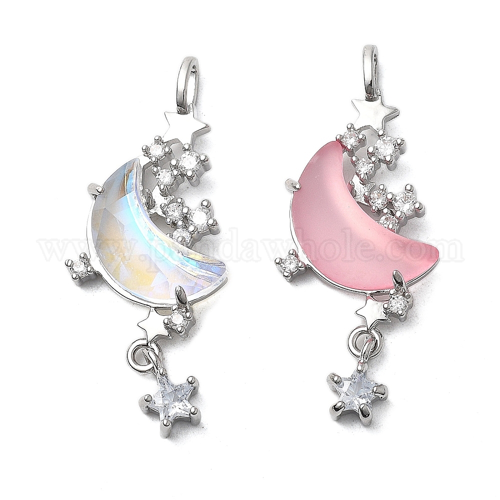 Латунный микропаве кубический цирконий с подвесками из смолы, без кадмия, без никеля и без свинца, звезда и луна, платина