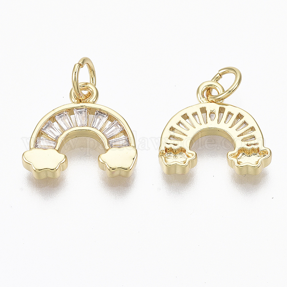 • Прозрачный Латунные микро проложить кубического циркония прелести, с целью перехода в кольце, без никеля , радуга, прозрачные, реальный 18 k позолоченный, 11.5x12.5x2.5 мм, отверстие : 3 мм