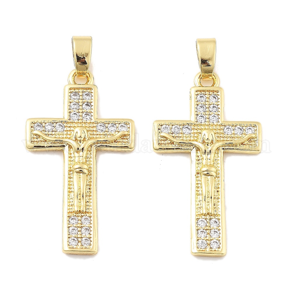 • Настоящее золото 18K Крест-распятие латунные подвески с микропаве из кубического циркония, без кадмия, без никеля и без свинца, реальный 18 k позолоченный, 29x16x3 мм, отверстие : 5 мм