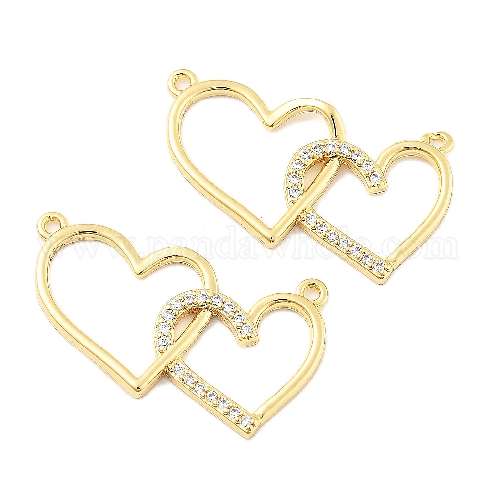 Подвески в виде двойного сердца из латуни с микропаве из прозрачных кубических цирконий, стойки покрытие, долговечный (033JQQ)