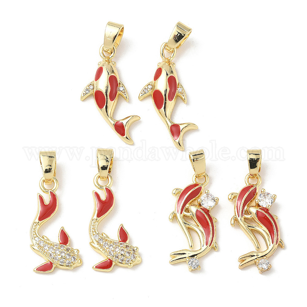 Латунные микро проложить кубического циркония подвески, рыба, с эмалью, стойки покрытие, долговечный, без кадмия и без свинца