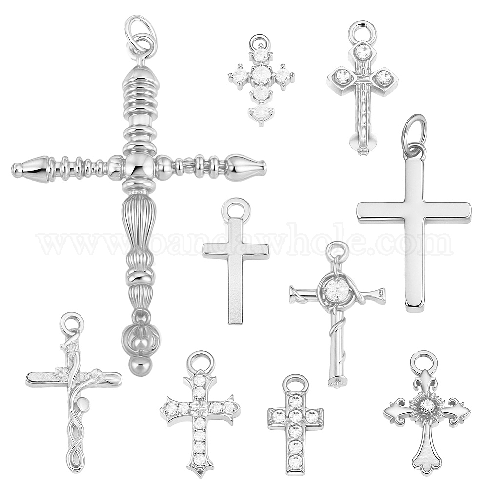 10 шт. 10 стили латунные микро-паве кубические циркониевые подвески, крест прелести
