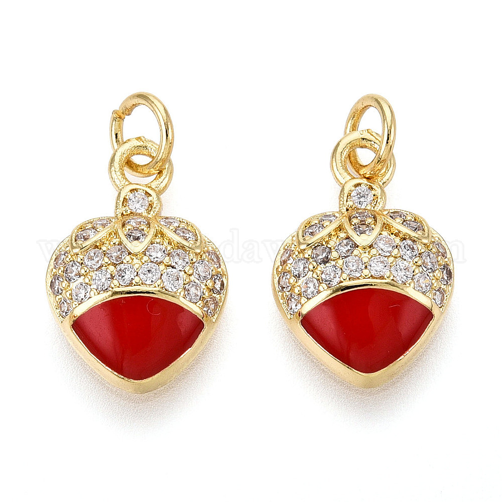 Латунные микро проложить кубического циркония подвески, без кадмия, без никеля и без свинца, с эмалью, клубника, с целью перехода в кольце