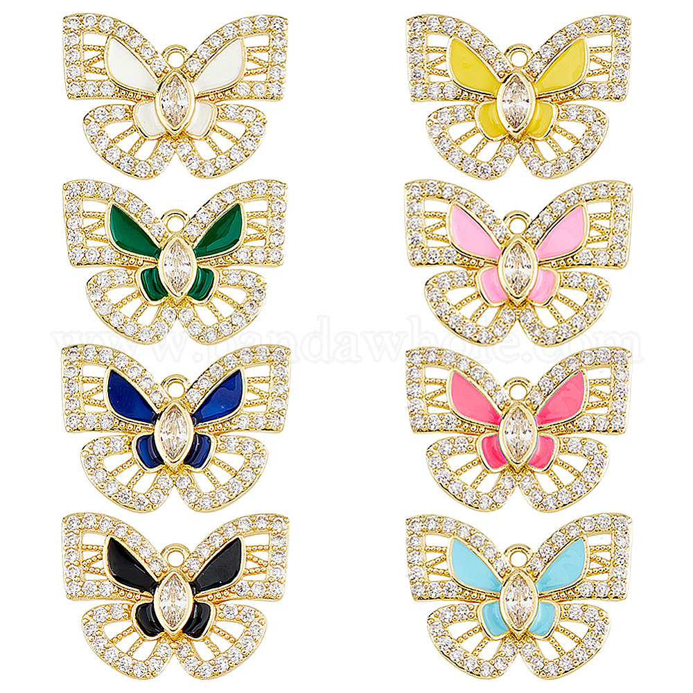 8подвески из латуни с кубическим цирконием, бабочка, с эмалью, реальный 18 k позолоченный (0344EM)
