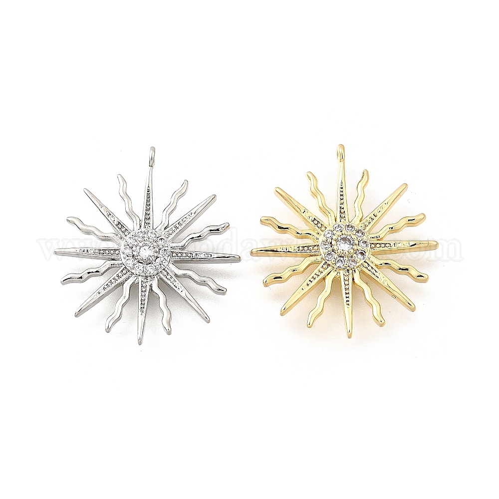Латунные микро проложить кубического циркония подвески, солнце (0346PA)