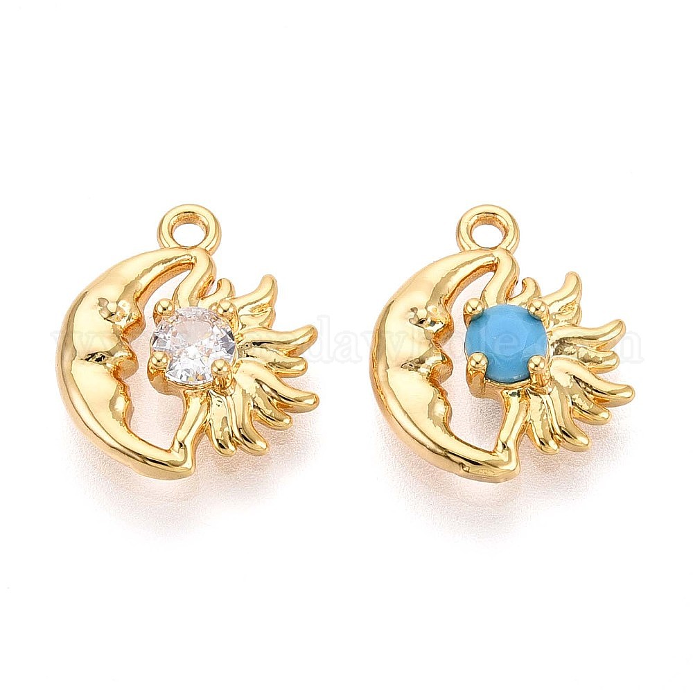 Латунные микро проложить кубического циркония прелести, луна и солнце, долговечный, без никеля , реальный 18 k позолоченный