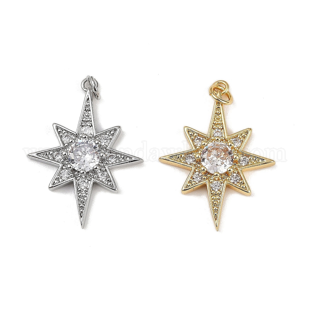 Латунные микро проложить кубического циркония подвески, без кадмия и без свинца, восьмиугольная звезда, с целью перехода в кольце