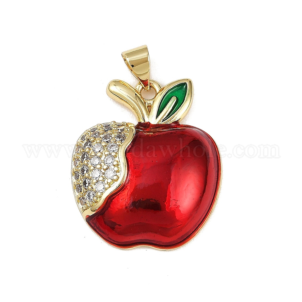 Кулоны из латуни с микропрозрачным паве и кубическим цирконием, без кадмия и без свинца, с эмалью, яблоко