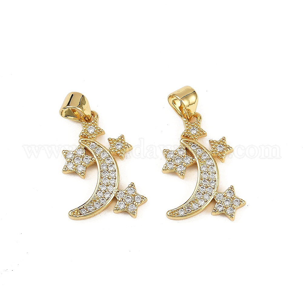 Латунные микро проложить кубического циркония подвески, Луна и звезды прелести, без кадмия и без свинца, стойки покрытие, долговечный