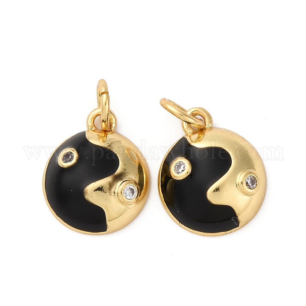 Латунный паве из кубических цирконий с эмалевыми подвесками, форма инь-ян, стойки покрытие, без свинца и без кадмия, долговечный, с целью перехода в кольце