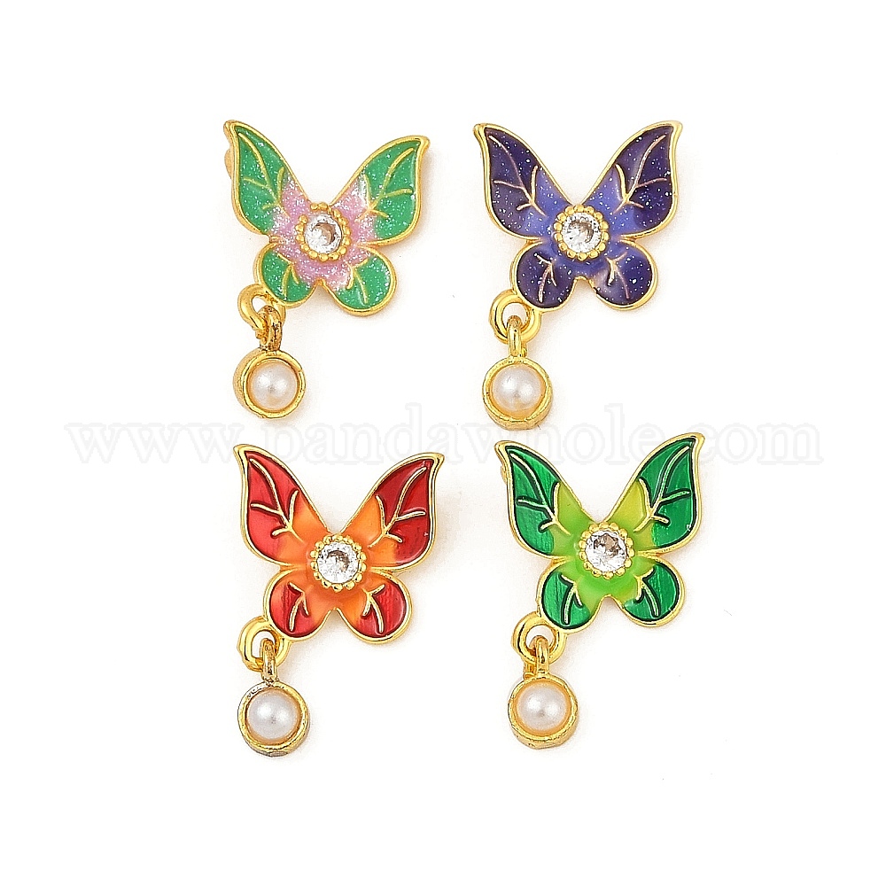 Подвески из латуни с кубическим цирконием и искусственным жемчугом из АБС-пластика, без кадмия, без никеля и без свинца, бабочка, с эмалью
