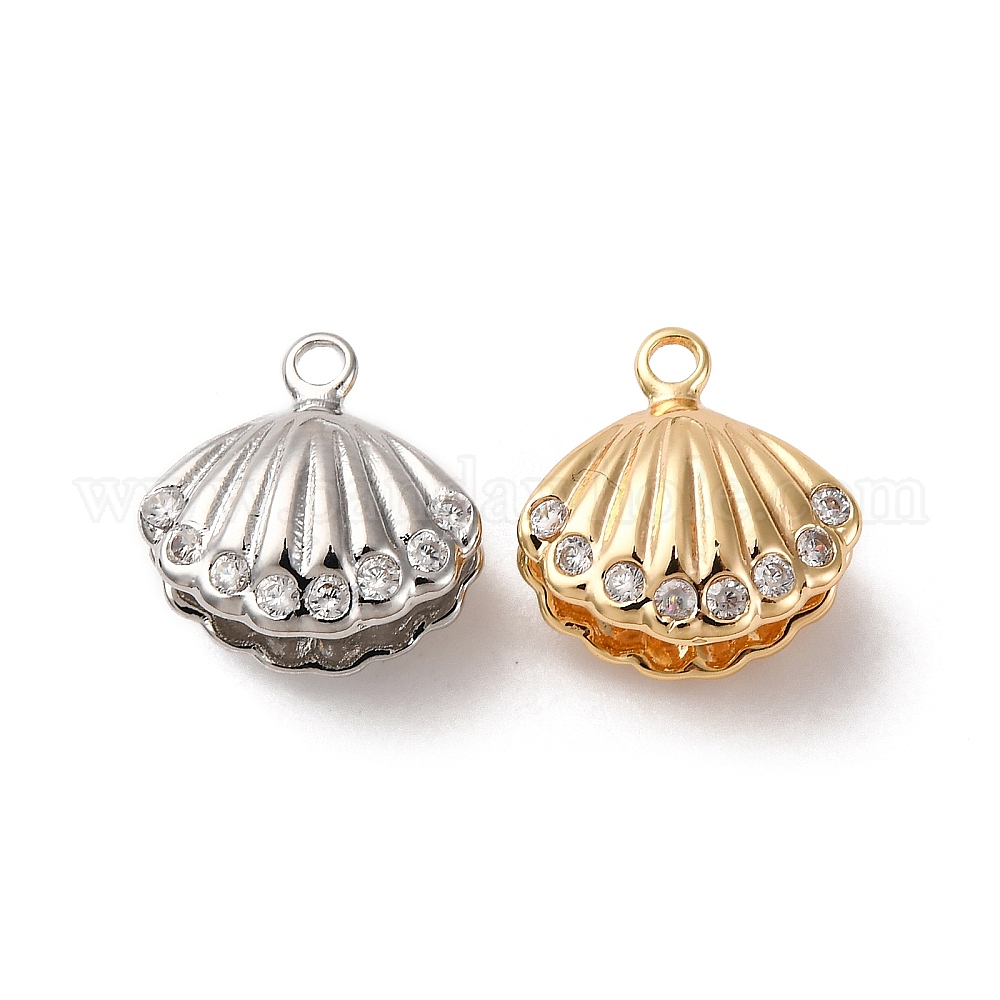 Латунные микропаве прозрачные кубические циркониевые подвески, без кадмия, без никеля и без свинца, формы раковины