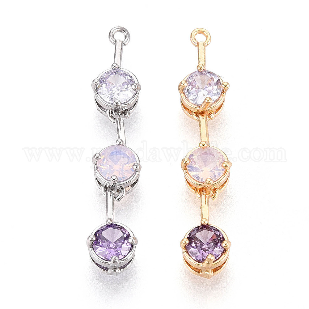 Латунные микропаве прозрачные подвески с фианитом, без кадмия, без никеля и без свинца, плоско-круглые