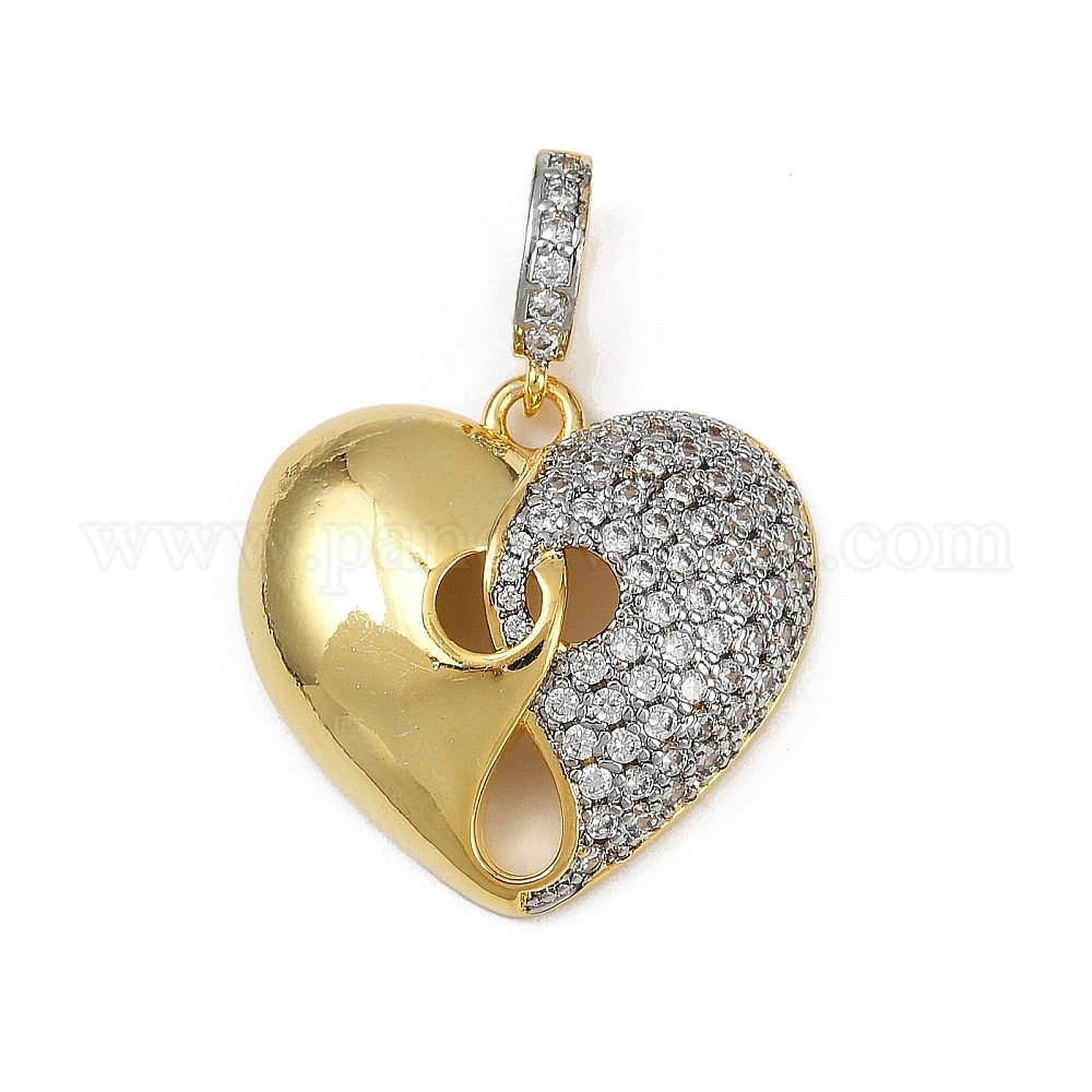 Латунные подвески в форме сердца с микропаве из прозрачных кубических цирконий, без кадмия и без свинца, стойки покрытие, долговечный