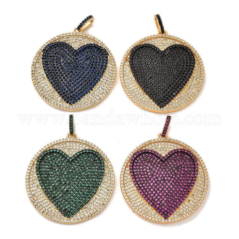 Латунные микро проложить кубического циркония подвески, плоский круглый с сердечками, стойки покрытие, прочное покрытие, без кадмия и без свинца, реальный 18 k позолоченный