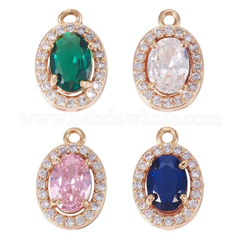 • (52) Непрозрачная лаванда 4 шт 4 цвета кулоны из латуни, микропаве, циркония, овальные амулеты, реальный 18 k позолоченный, разноцветные, 13x8.5x5 мм, отверстие : 1.2 мм, 1 шт / цвет