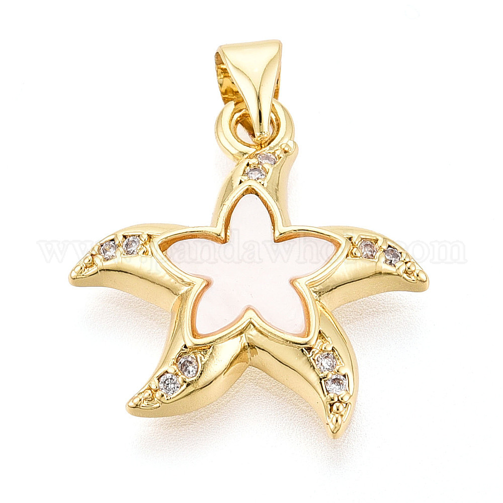 Латунные микропаве прозрачные подвески с фианитом, без кадмия и без свинца, с оболочкой, морская звезда
