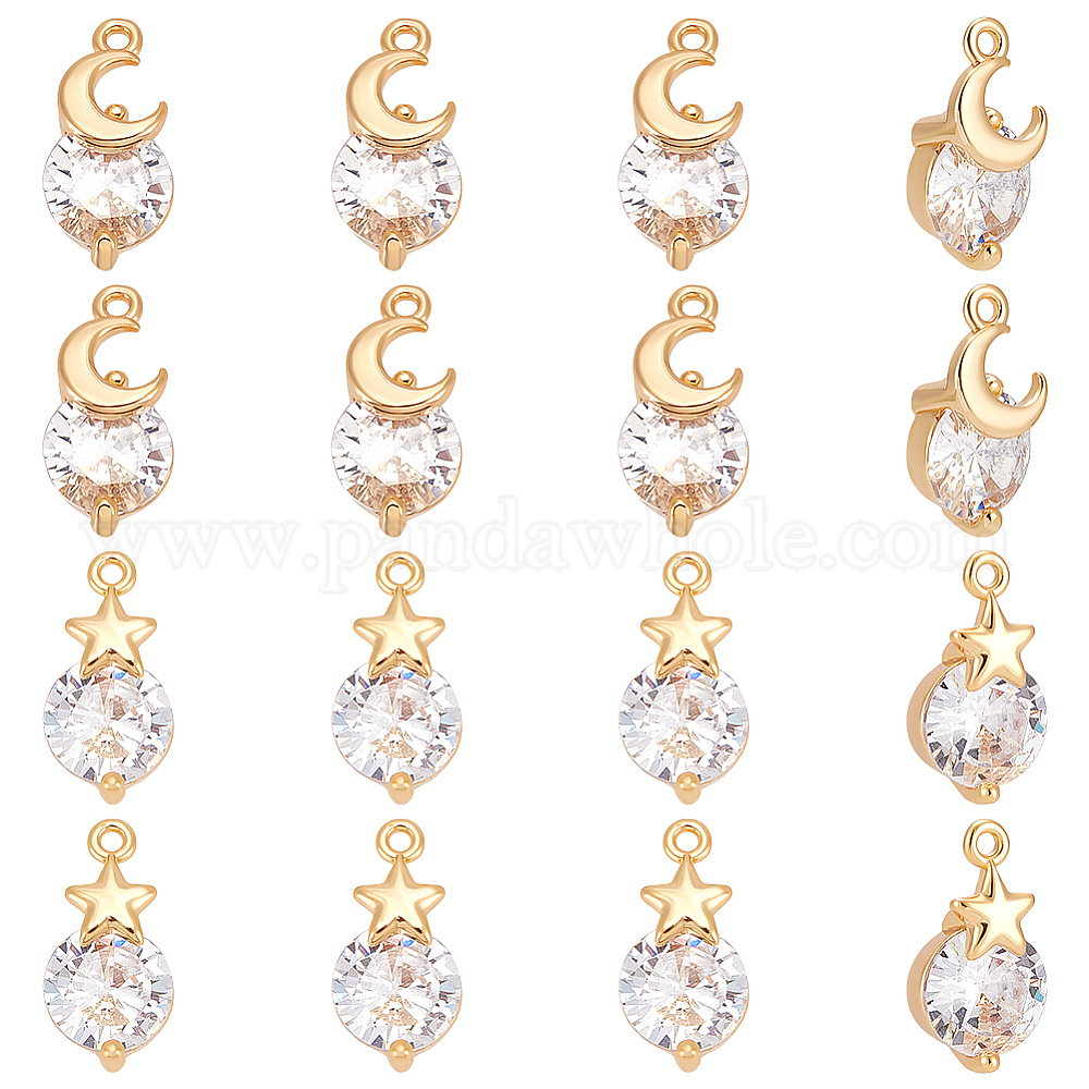 16 шт. 2 стили латунные микро-паве кубические циркониевые подвески, реальный 18 k позолоченный