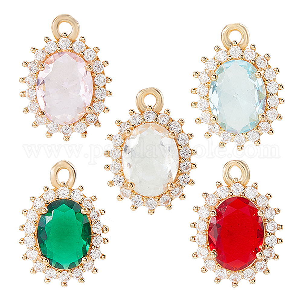 10 шт 5 цвета кулоны из латуни, микропаве, циркония, со стеклом, овальные, золотой свет