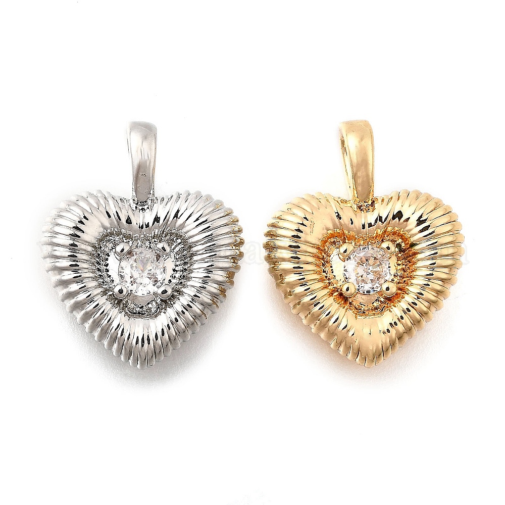 Латунные подвески, без кадмия, без никеля и без свинца, с кубического циркония, сердце (034WT8)