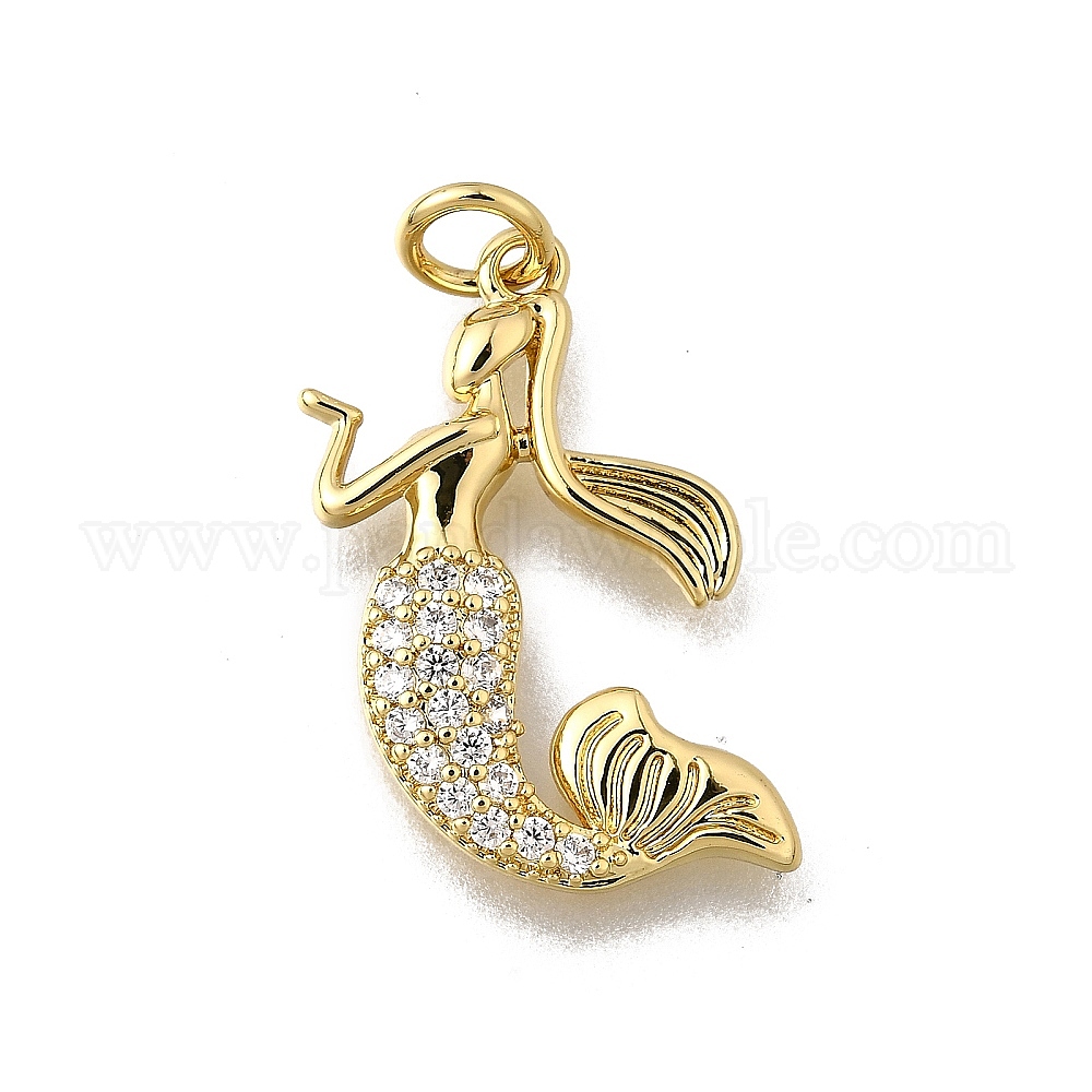 Латунные микропаве прозрачные подвески с фианитом, без кадмия, без никеля и без свинца, русалка прелести
