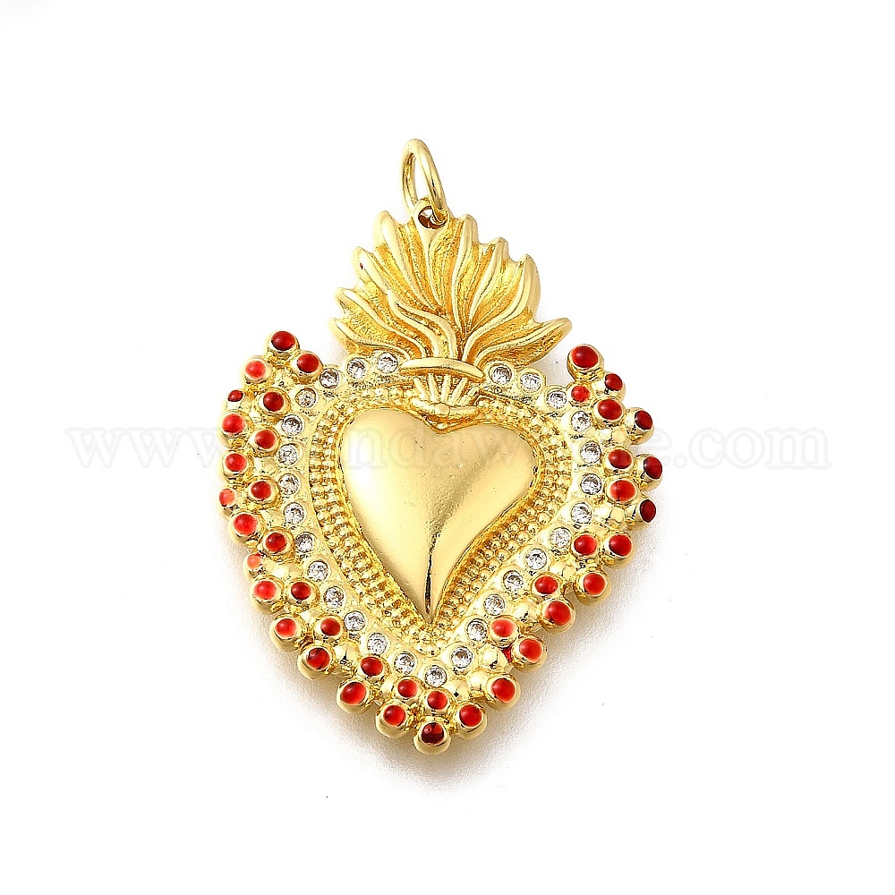 Латунные микропаве прозрачные подвески с фианитом, без кадмия, без никеля и без свинца, сердце прелести, с эмалью