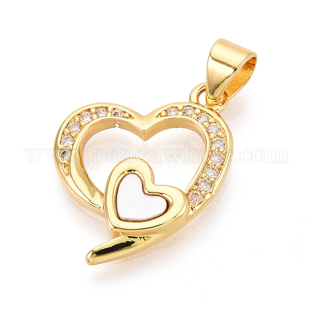 Латунные микропаве прозрачные подвески с фианитом, без кадмия и без свинца, с оболочкой, сердце (034YHQ)