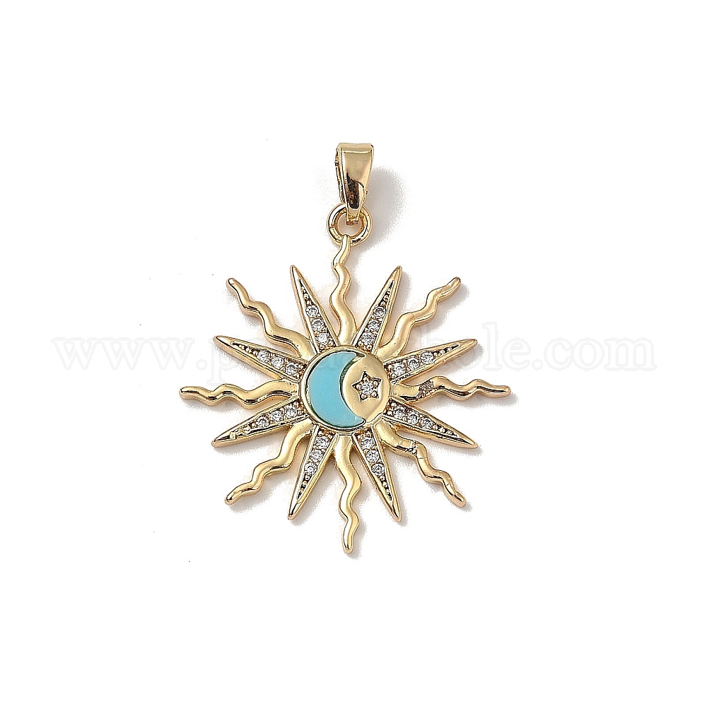 Латунные микропаве прозрачные подвески с фианитом, солнце, с пластиковым
