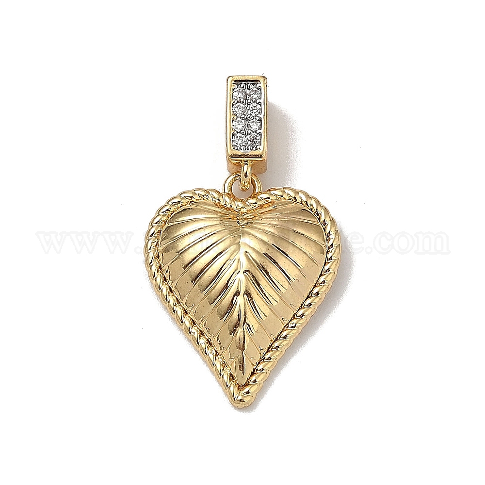 Латунные микропаве прозрачные подвески с фианитом, сердце, золотые
