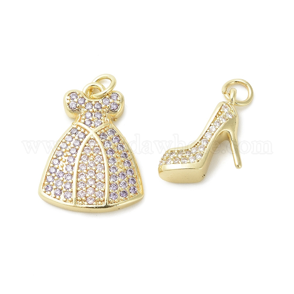 • Clothes Латунные микро проложить кубического циркония подвески, реальный 18 k позолоченный, с целью перехода в кольце, одежда, 21.5x16.5x3.5 мм, отверстие : 3.2 мм