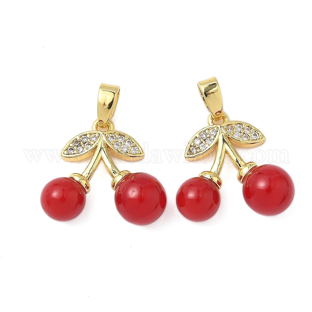 Латунные микропаве прозрачные подвески с фианитом, вишня, cmолой, реальный 18 k позолоченный