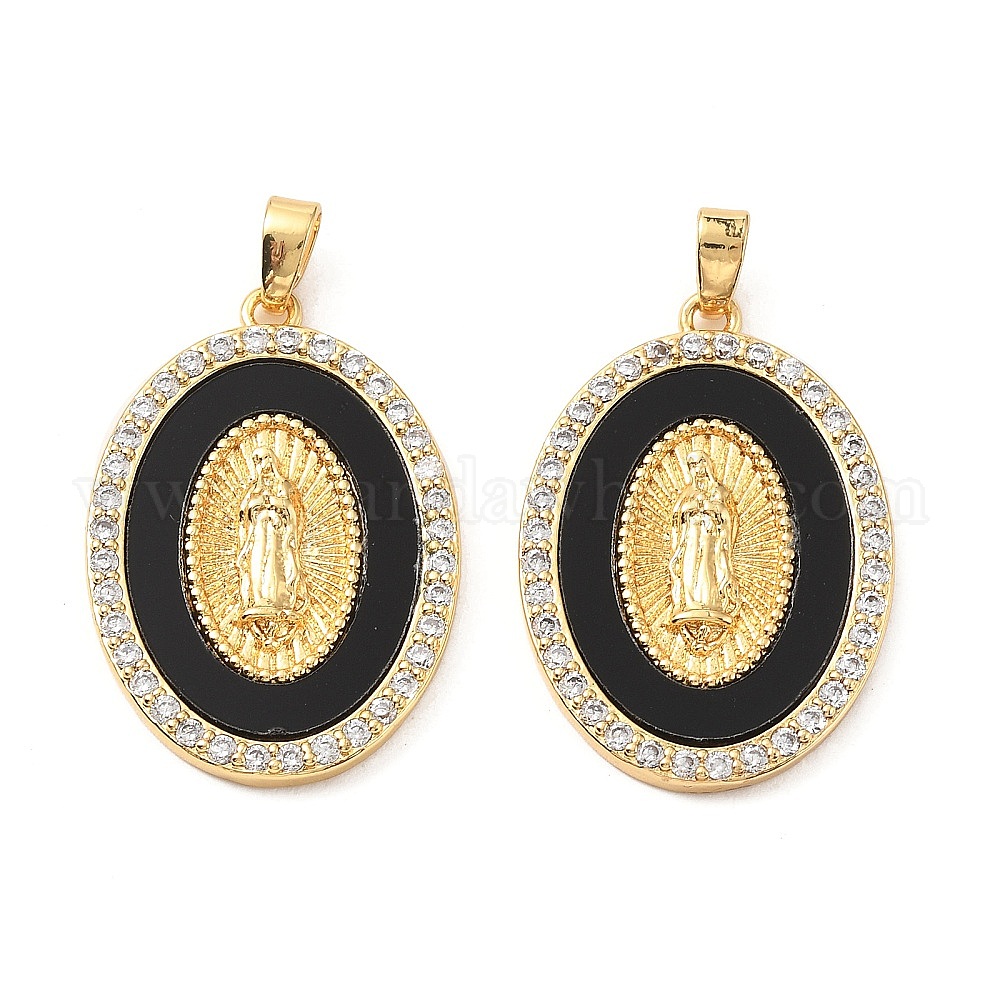 Латунный микропаве кубический цирконий с акриловыми подвесками, овал с девственной рисунком мэри, без кадмия и без свинца, реальный 18 k позолоченный