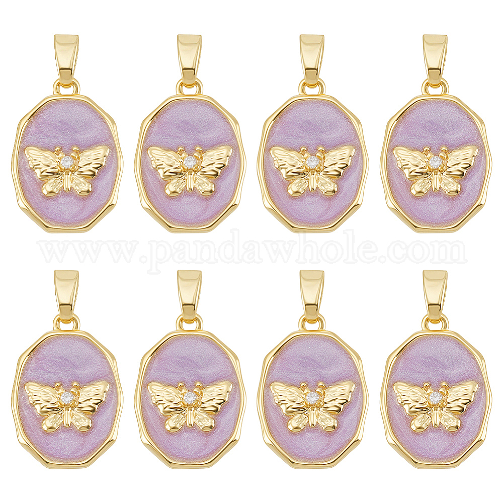 • Средний Фиолетовый 8 кулоны из латуни с микрочастицами и кубическим цирконием., с эмалью, овальные с бабочкой, реальный 18 k позолоченный, средне фиолетовый, 17.5x12.5x2.5 мм, отверстие : 4.5x2.5 мм
