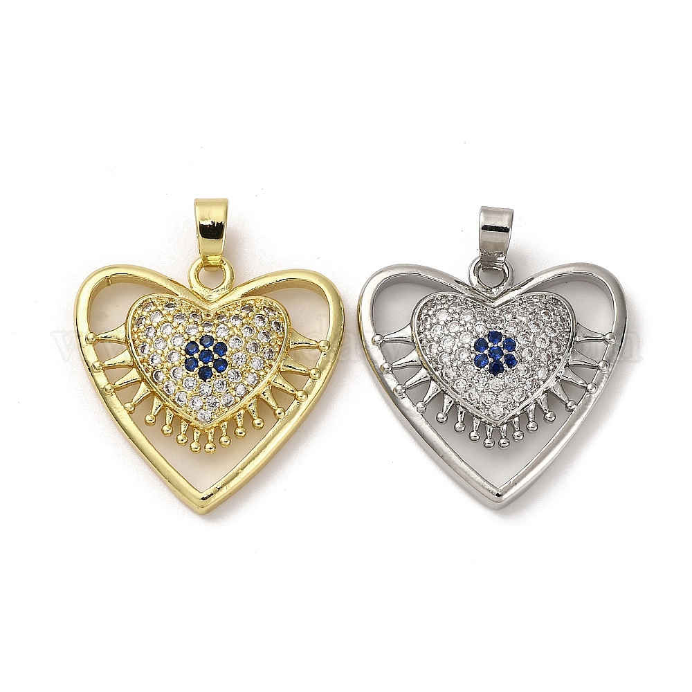 Латунные микро проложить кубического циркония подвески, без кадмия, без никеля и без свинца, сердце с оберегами от сглаза