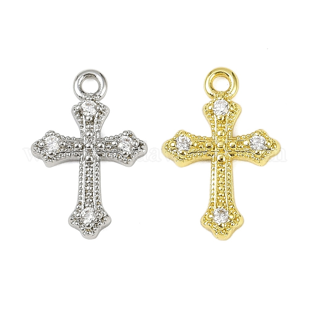 Латунные микропаве прозрачные подвески с фианитом, без кадмия, без никеля и без свинца, крест прелести